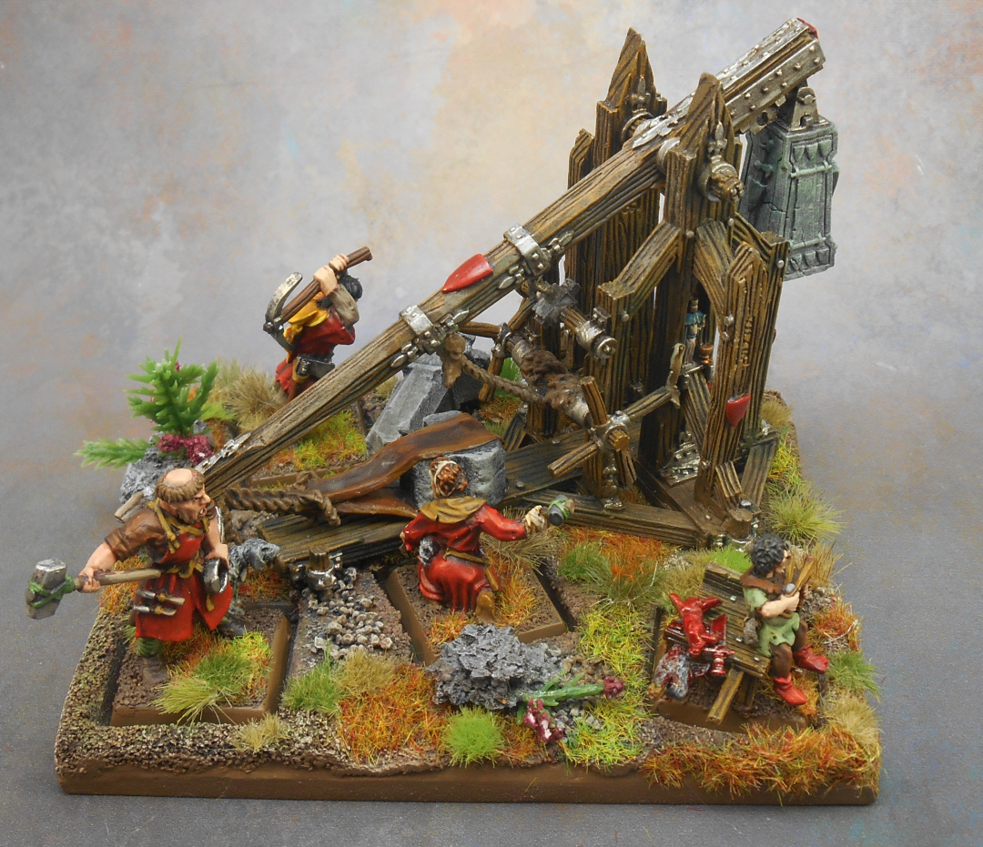 My Bretonnian Trebuchet has been with me for a long time: it was the first big kit I added to my army battallion at the start of 2006. It’s been painted twice since then, with this being the third and hopefully final time.