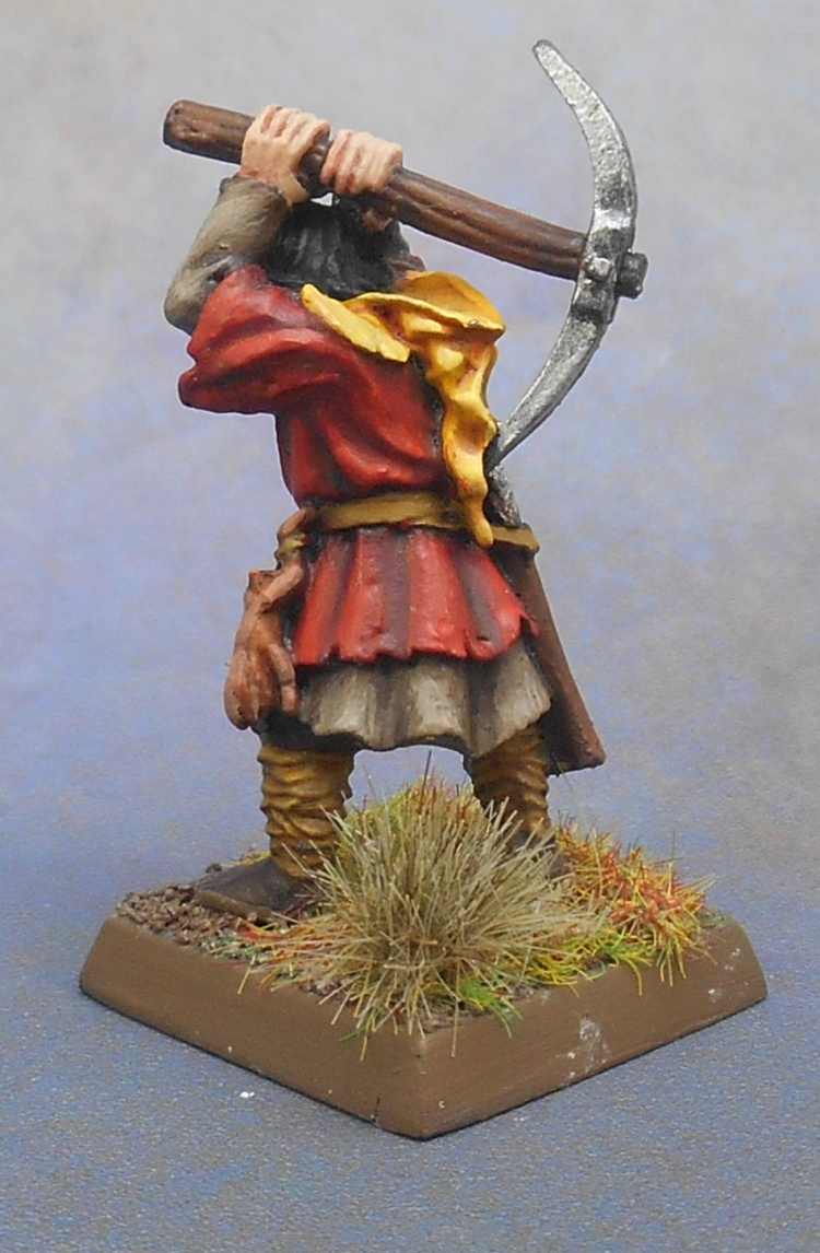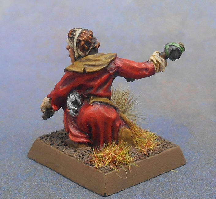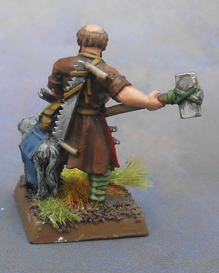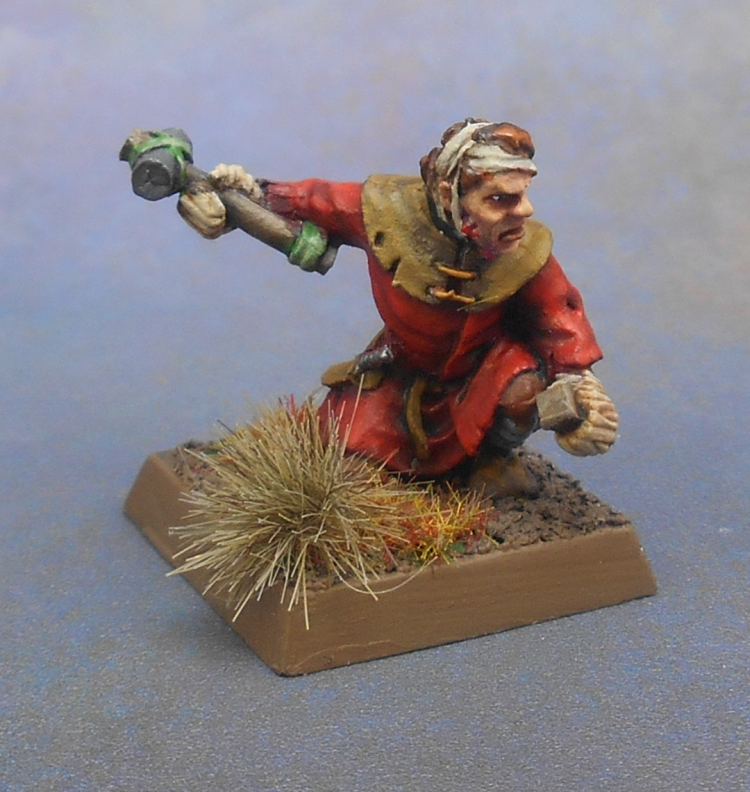I found a picture of the way it used to look the first time. I still remember the colours I used: Elf Flesh, Bestial Brown, Snakebite Leather, Midnight Blue and Chainmail. I didn’t have any other Games Workshop paints. The black, white, green and orange from the carrot were painted with (very) cheap craftstore paints, and the purple? Revell enamel. It killed my paintbrush.