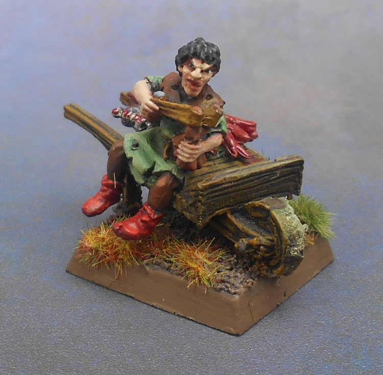 One of the crewmembers ended up missing after a tournament at a local store. I probably forgot to pack him up after we finished and only found out two weeks later when playing a battle against my friend. Since the army book gave them a crew of four I promoted the slingshot kid to his own base. He looks a bit like a young Ramsay Bolton, so I gave him a skinned rabbit. All in all, it was a fun job to tackle this miniature again.